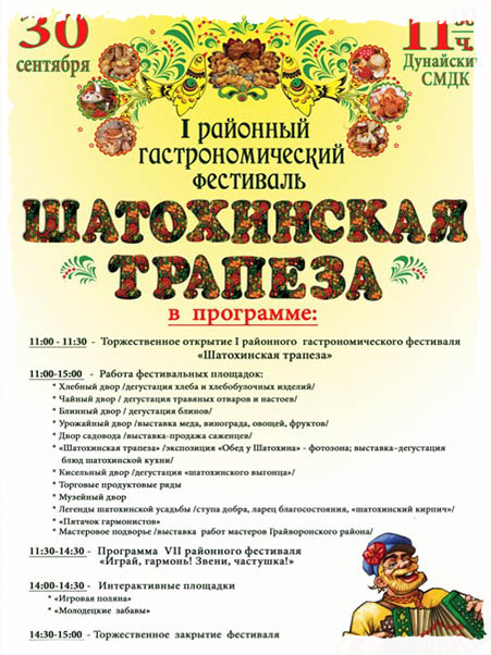 Открытый кулинарный фестиваль - «Шатохинская трапеза: дунайские лёпанцы»